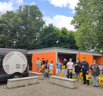 Im Rahmen unserer Bildungspartnerschaft haben die engagierten Schüler*innen der Klassen 7 bis 9 die Fahrradhalle auf dem Schulgelände verschönert. Vom 07.07. bis 10.07.2025 haben die Jugendlichen mit viel Kreativität, Teamgeist und handwerklichem Einsatz die Halle in einen modernen, farbenfrohen Blickfang verwandelt